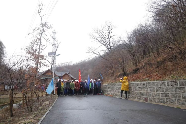雨水淅瀝,跋山涉水,我們戰(zhàn)勝了天氣,戰(zhàn)勝自我,大家在山頂稍作休息,拍照留念后,開始相互攙扶下山,團結(jié)協(xié)作。