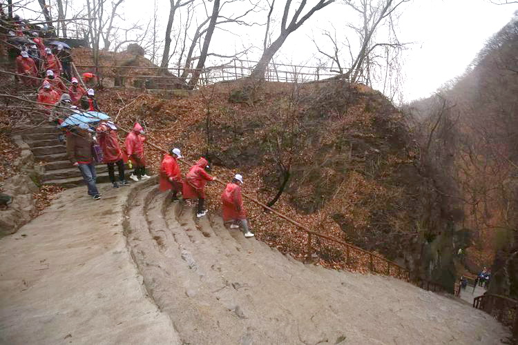 上午9時許,我們達到了天女山腳下,按照事先計劃,以分公司為單位,組建成3支隊伍即挑戰(zhàn)隊、戰(zhàn)狼隊、沖鋒隊,整裝待發(fā),做好了登山比賽前的最后準備。