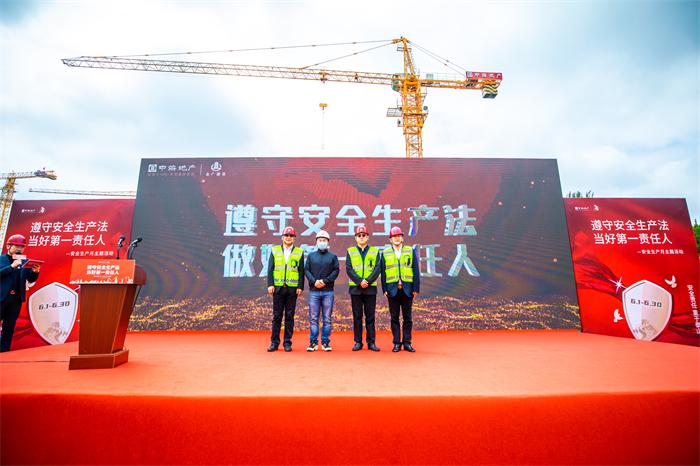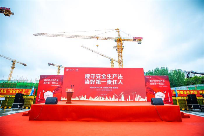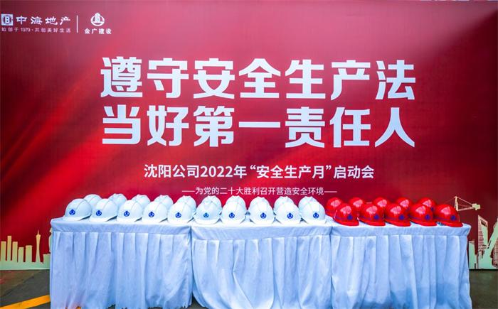 2022年6月是第21個全國“安全生產(chǎn)月”,主題為:“遵守安全生產(chǎn)法,當(dāng)好第一責(zé)任人”。為深入貫徹習(xí)近平總書記關(guān)于安全生產(chǎn)的重要論述,推動落實安全生產(chǎn)十五條措施,宣傳貫徹安全生產(chǎn)法,推動“第一責(zé)任人”守法履責(zé),提升施工現(xiàn)場工人安全意識,2022年6月7日上午,在大連金廣建設(shè)集團承建的中海天鉆項目舉行中海地產(chǎn)沈陽公司2022年“安全生產(chǎn)月”活動啟動儀式。