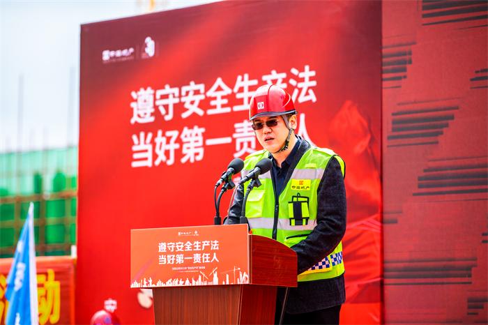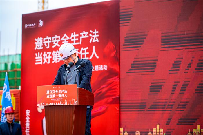 緊接著,由中海地產(chǎn)沈陽公司助理總經(jīng)理鄒恩鵬帶領(lǐng)參會人員進(jìn)行現(xiàn)場安全喊話,共同安全宣誓: